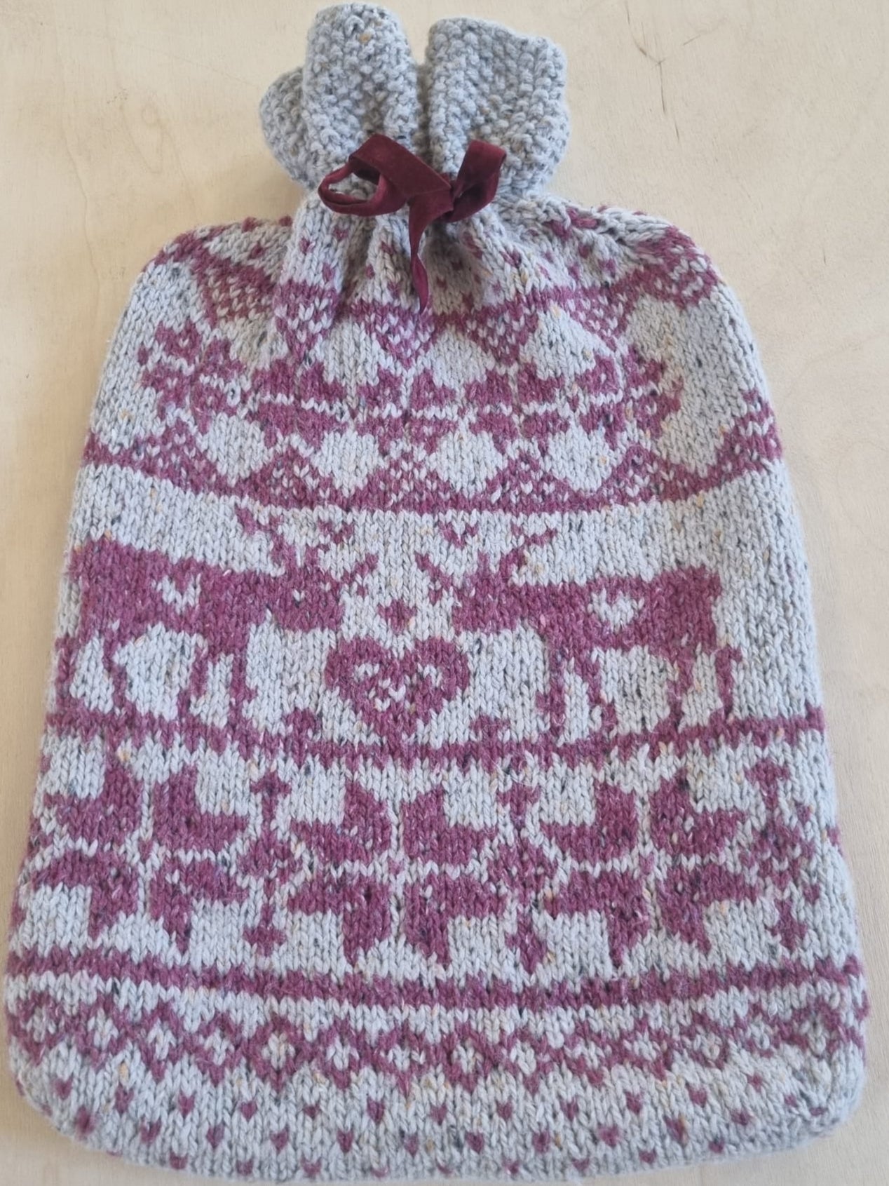 De kruikenzak wordt in het rond gebreid. Dit project is een perfecte uitdaging voor de ervaren beginner die in het rond wil leren breien in een fair isle patroon.